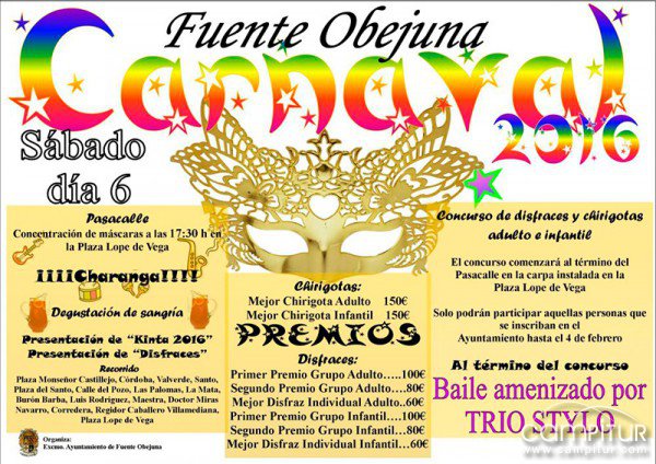 El próximo sábado, 6 de febrero, Fuente Obejuna celebra su Carnaval 2016, y para ello, desde el Ayuntamiento de la localidad, se ha elaborado un completo programa de actividades que se llevarán a cabo.