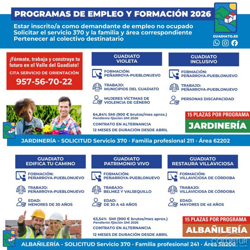 El Valle del Guadiato abre el plazo para los Programas de Empleo y Formación 2026, una iniciativa que combina formación y trabajo remunerado a través de un contrato de trabajo en alternancia con una duración de 12 meses (inicio previsto a partir de abril de 2026). Cada programa oferta 15 plazas y contempla una retribución aproximada de 900 € brutos/mes (pendiente de fijación del SMI 2026).