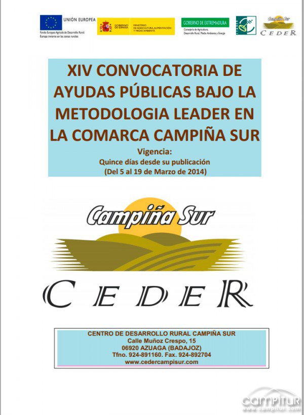 El pasado miércoles, 5 de marzo, se procedía a la apertura y publicación de la XIV Convocatoria de Ayudas bajo la metodología Leader en la comarca Campiña Sur.